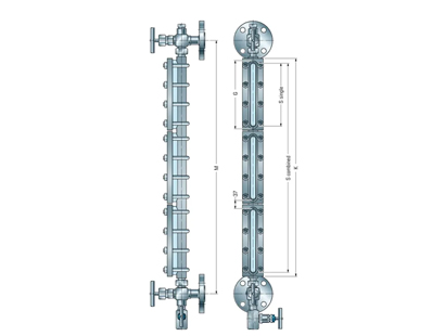 Transparent and reflex level gauges for visual level monitoring in tanks, vessels, and process systems.